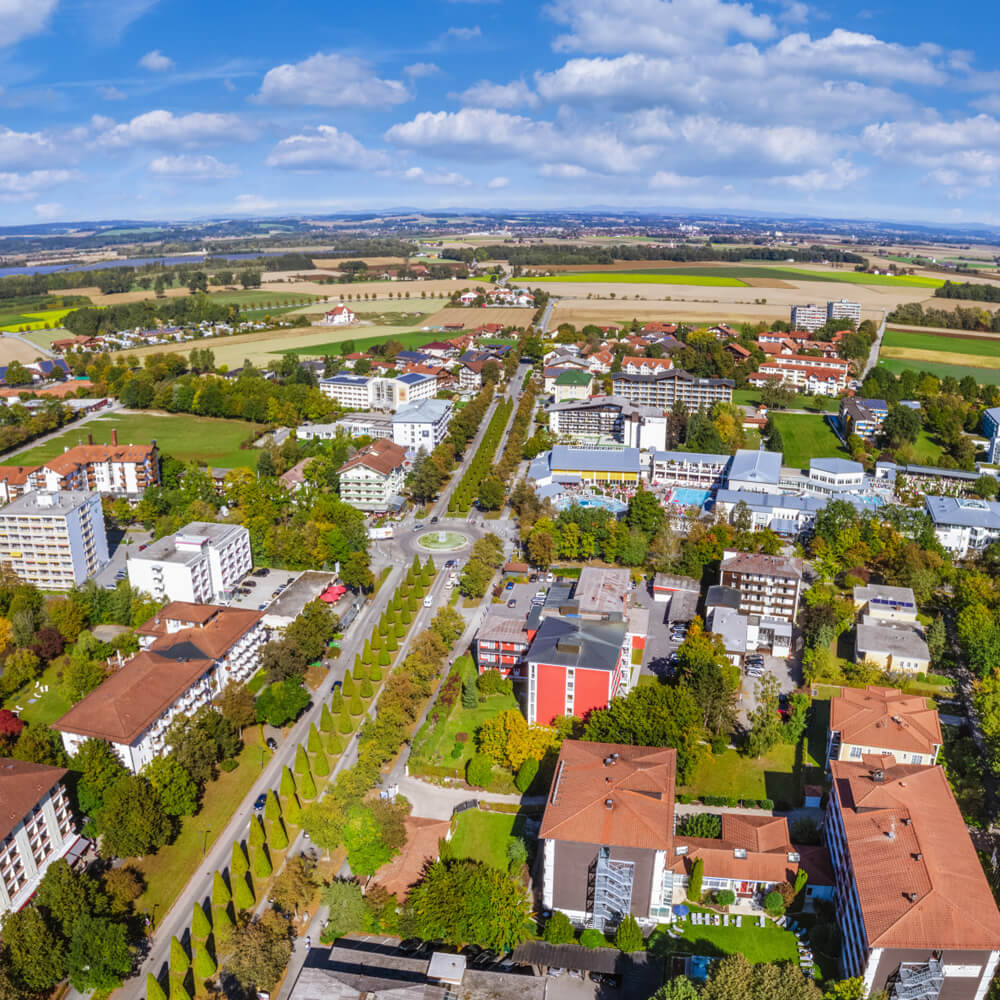 Der Thermenhof liegt in bester Lage im Zentrum von Bad Füssing. Die Therme I mit dem großzügigen Saunahof befindet sich direkt gegenüber unseres Hauses. Die zentrale Lage des Thermenhofs macht Sie unabhängig vom Auto oder öffentlichen Verkehrsmitteln. Geschäfte des täglichen Bedarfs erreichen Sie mit wenigen Schritten. Nur ein paar hundert Meter entfernt sind Sie vom großen und kleinen Kursaal, dem Kurpark, der Europa-Therme und dem Casino.